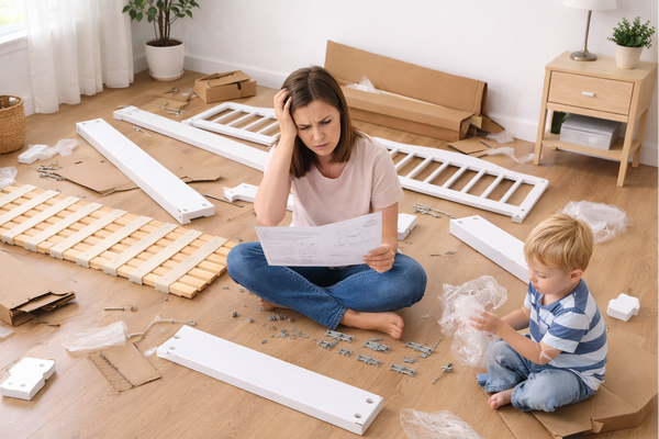 No bulky mechanisms, no problem. Simple tool free assembly.